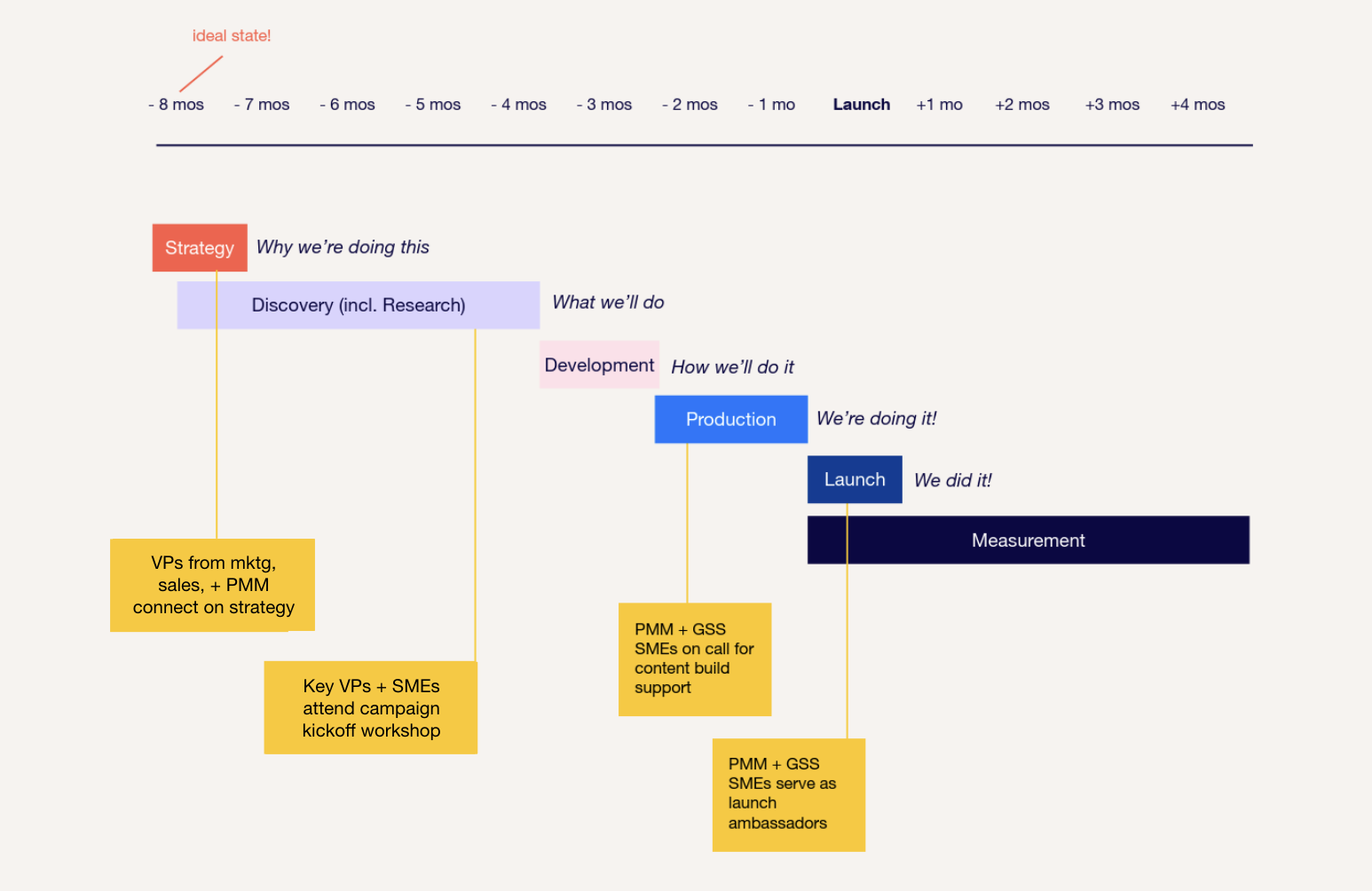 Integrated Campaign Timelines: Detailed, functional end-to-end milestone maps across marketing, sales, creative, product, comms and legal.
